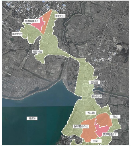 项目概况:国瓷小镇位于古城河-游子山=桠溪慢城-花山风景区,区域旅游的交界中心。四至范围分为:高淳陶瓷新厂区芜太公路以北高淳陶瓷新厂至古檀大道面积约1.08平方公里;高淳陶瓷老厂区包括食用菌产业园、旧水泥厂区、秀山公园及桥头村、秀山村面积约1.95平方公里。核心规划区面积约1.1平方公里,风貌控制区面积约3.3平方公里。