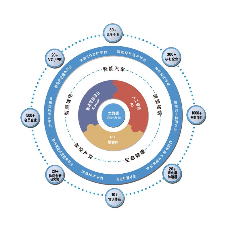 仙桃国际大数据谷深入贯彻“实施国家大数据战略加快建设数字中国”的重大部署,围绕数据链价值发展规律,布局“1+3+5+10+N”创新生态体系。联动国家信息中心、两江云计算中心、掌握海量数据企业等集聚数据资源,布局物联网(IOT)、集成电路设计(IC)、人工智能(AI)等3大核心产业,重点发展智能汽车、智能终端、航空产业、生命健康、数字城乡等5大产业,打造智能样机生产平台、全套3D打印平台、外观设计平台、智能汽车协同创新平台、仙桃学院人才培养平台、先进计算平台、软件系统开发平台、类脑技术平台、生物医药研发平台、航空产业服务平台,针对“智能汽车、智能终端、航空产业、生命健康、数字城乡”等5大产业领域提供完善的行业整体解决方案,建立产业与科研深度融合的桥梁。目标企业包括工业、航空、金融、健康、教育、设计、商务、城市管理等大数据应用领域,以及虚拟现实、服务机器人、智能穿戴、智能终端的行业龙头。