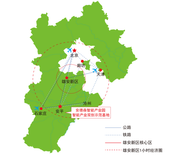 安德森智能家居产业园位于河北省安平高新技术开发区。园区地处京津冀协同发展核心区,紧邻雄安新区(至雄安约70公里),覆盖3大国际机场,紧邻大广高速和京九铁路,联通10余条国家级高速公路, 区位优势明显。