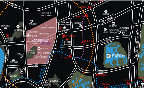 中国(杭州)人工智能小镇位于全国四大未来科技城之一的杭州未来科技城(海创园)核心区块,规划面积约为3.43平方公里。其先导区位于文一西路1818-2号,占地227亩,共计100万方。杭州未来科技城作为全省创新创业的高地之一,已形成了一支以“阿里系、浙大系、海归系、浙商系”为代表的创业“新四军”队伍。中国(杭州)人工智能小镇同时又处于浙江省科技创新“十三五”规划版图上重点打造的城西科创大走廊核心区域,依托城西科创大走廊人才、产业、资本等优势,借助浙江大学、阿里巴巴、海创园、梦想小镇等各类平台优势,从而实现人工智能领域高端要素的集聚,未来必将成为继海创园、梦想小镇之后杭州城西科创大走廊的又一个“引爆点”、“新地标”。