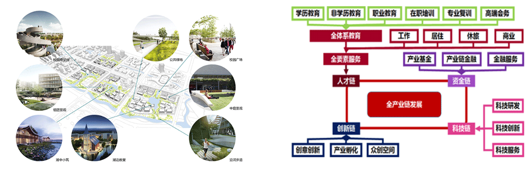 产业定位突出“特而强”-航空教育为主导、应用型人才培养为特色。建设形态突出“精而美”-航空文化、特色风貌、开放街区、教育小镇。功能叠加强调“融而合”-训、教、产、研、金、商、展、游。体制机制坚持“灵而活”-职业教育、政府引导、企业主体、市场运作。