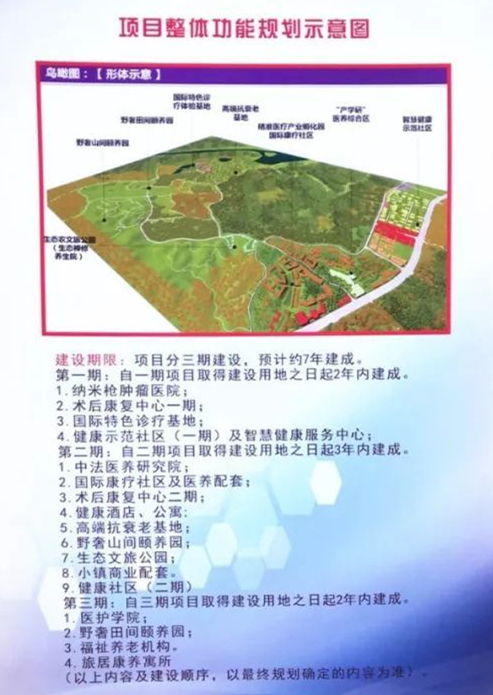 杏花村智慧康疗小镇将分三期建设,预计7年建成。一期预计投资总额约10亿元,将建成总面积约16万平方米的,集“高端医院、功能商业、健康社区”一体化的智慧康疗小镇核心区域,建设“纳米枪”肿瘤治疗专科医院和智慧康疗社区。后续二期和三期项目,将依托杏花村文化旅游区得天独厚、独树一帜的自然景观和人文景观,建设包括国际特色诊疗体验基地、中法医养研究院、国际康疗社区、高端抗衰基地、术后康复中心和精准医疗产业孵化园等一系列健康产业,打造完整的健康产业上下游生态链。