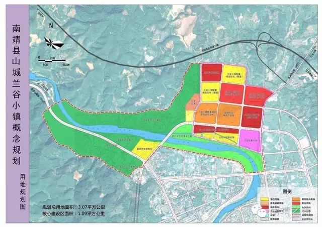 南靖山城兰谷小镇总体形成“一轴联动、水脉盈彩、三区共荣”的空间格局: